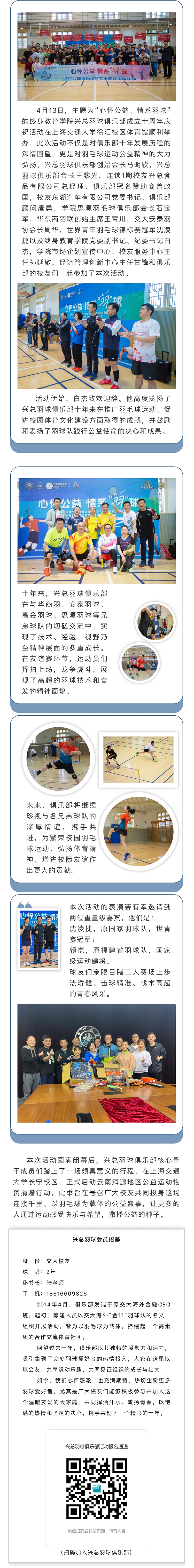 校庆季 | 心怀公益 情系羽球:兴总羽球俱乐部成立十周年庆祝活动
