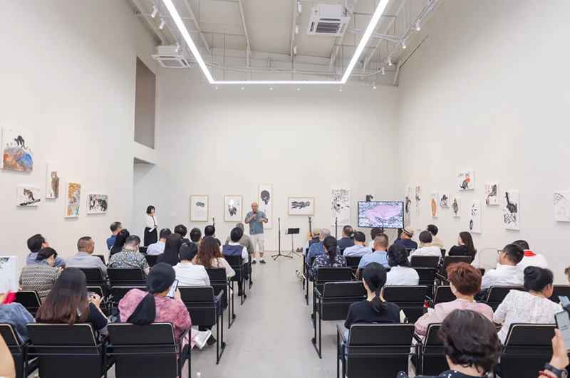 本次展览也是一次成人跨界撸猫的艺术儿童节,开幕当天吸引了各路猫奴的参与和支持。马陈兵在现场分享了他的创作历程并对其新书《猫民十记》进行先行介绍,sjb世俱杯中国官网入口艺术品鉴赏与投资联谊会的猫迷组团观展并唱响《童年》,上海街艺演出的代表人物知名歌手罗小罗也在现场献唱。