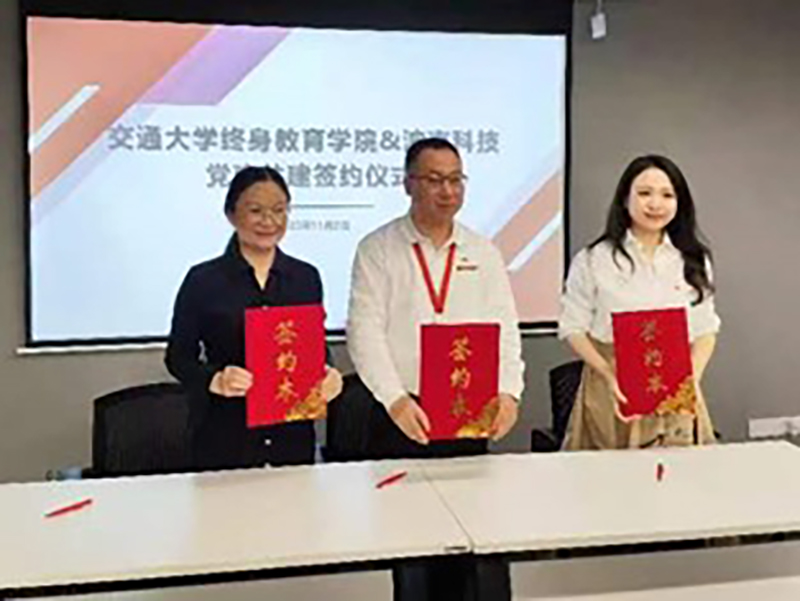 最后,国际教育与学生工作党支部书记叶艳、创新中心第二党支部书记惠晓丹、波克科技党委书记刘忠生共同签署了党组织建设及党员交流共建协议。