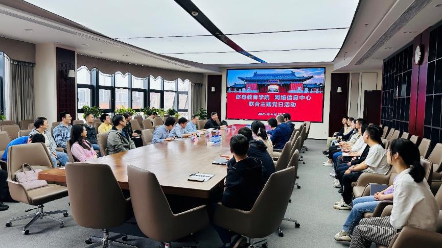 2025年4月17日下午,sjb世俱杯中国官网入口数字创新党支部与网络信息中心第一、第二党支部联合开展主题党日活动,围绕深入贯彻中央八项规定精神学习教育进行联组学习,并聚焦“AI赋能非学历教育”开展互动交流,进一步深化党建工作与事业发展深度融合。活动由网络信息中心党总支书记沈宏兴主持。