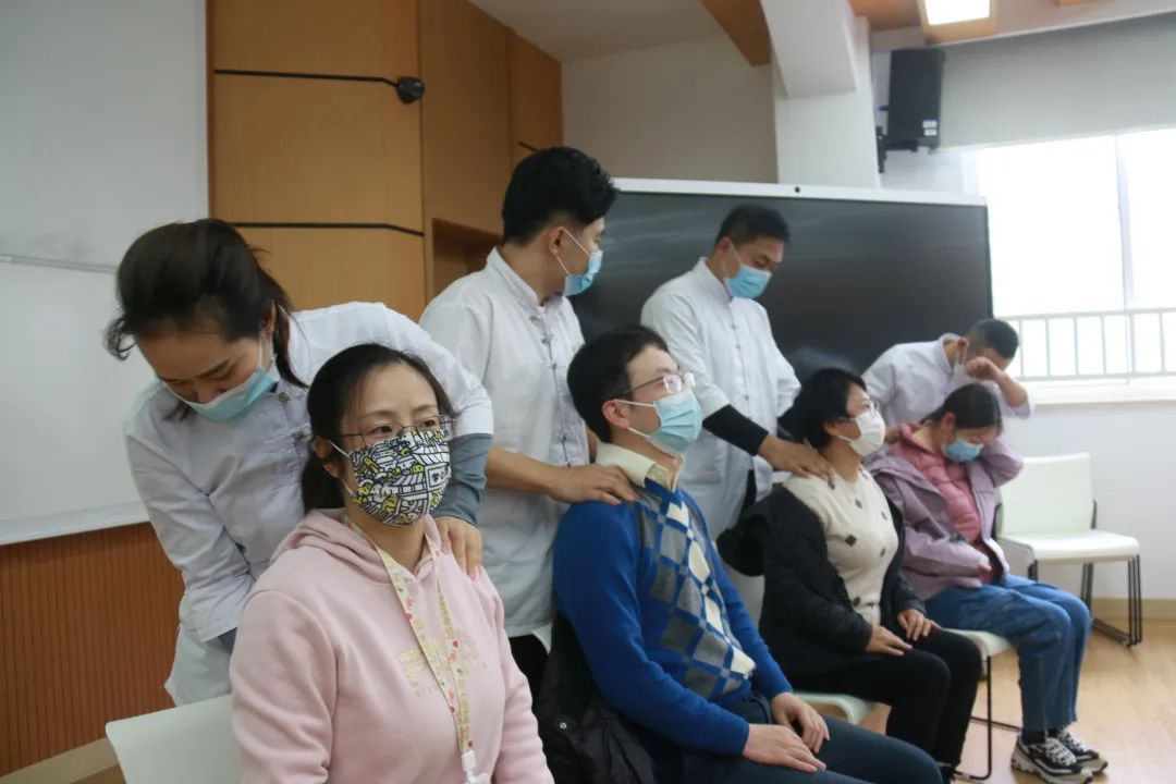 讲座结束后,学院老师们体验了中经堂提供的现场推拿服务,并向施老师请教了健康养生问题,施老师耐心热情地一一作答。