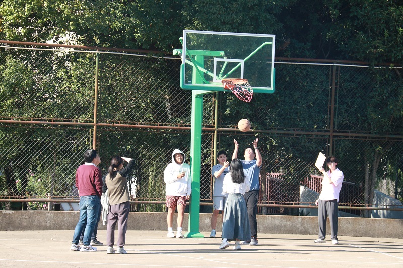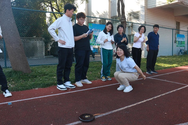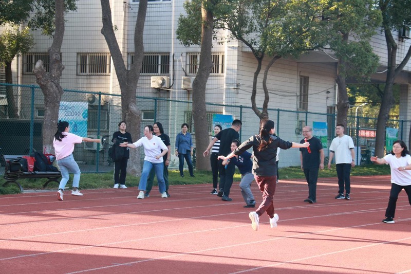 篮球场上的投篮比赛同样激烈。每一次的投球,都引来围观老师们的一片叫好声。无论投中与否,老师们都相互喝彩鼓励。