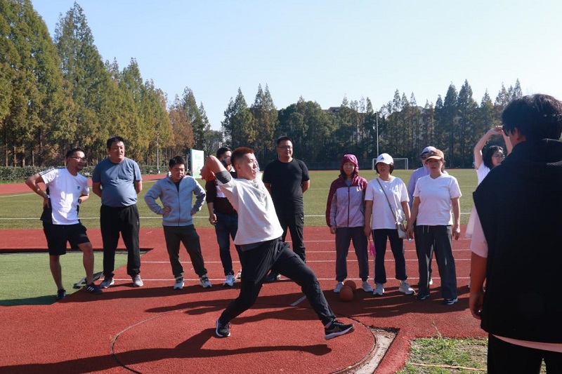 学院党委副书记吕忆松、副院长项玉、院长助理沈野莹出席此次运动会。近200名员工精神抖擞,英姿飒爽地来到七宝校区体育场,共同合影留念。沈育新老师担任裁判长,朱文秀老师担任副裁判长。