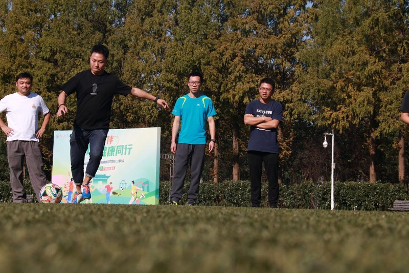 足球射门的竞赛异常激烈。老师们如同化身神射手,足底运劲,瞬间发力,足球像离弦之箭般飞向球门,迎来阵阵喝彩。