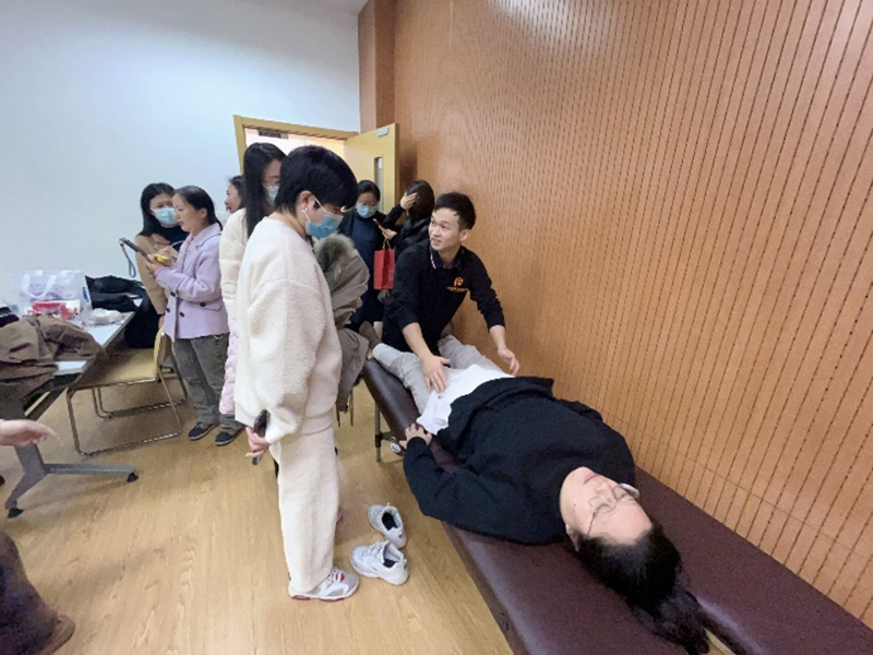 本次活动的主题是“魅力女性,健康护脊”,妇工委邀请到了脊柱方面的专家来现场讲解和义诊。此次活动的目的是引导大家形成自主自律的健康生活方式,讲解的主题为《肩颈那些事儿-办公室肩颈实用守则/脊柱健康与慢性疼痛缓解》。专家为教职工们普及了脊柱侧弯的症状、危害、预防措施等知识,在日常生活中通过养成良好的行为习惯来预防脊柱侧弯:一是睡眠姿势要正确,枕头高度、床垫硬度应适中,选用软硬合适的护脊床垫;二是注意颈椎保暖;三是避免单肩背包或单侧抱重物;四是养成科学坐姿、站姿、行走姿势;五是合理安排运动,注意运动姿势,避免腰部过度疲劳;六是注意钙的补充,适当晒太阳。