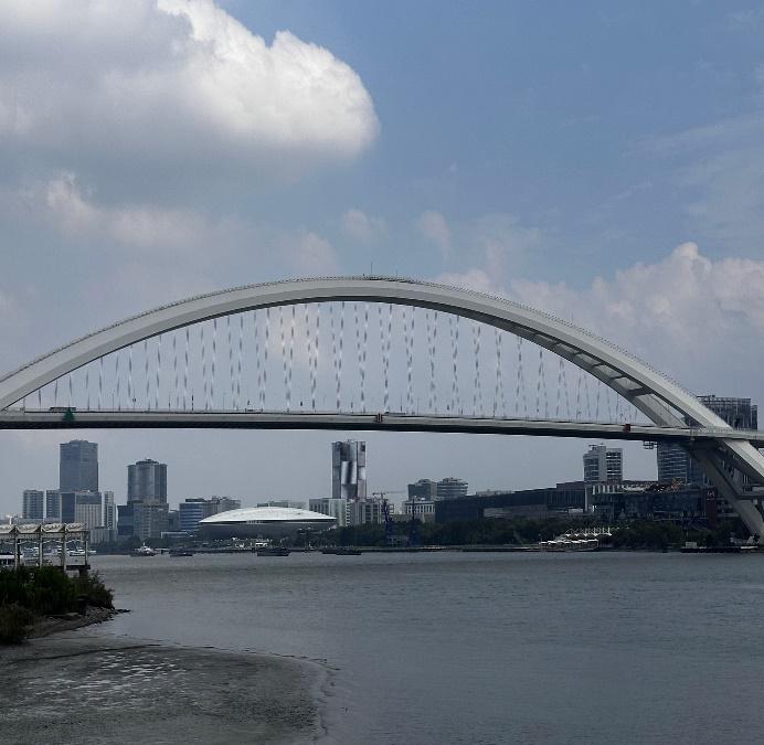经过近2小时的步行,大家集体抵达卢浦大桥,欣赏了这座拱形桥的雄姿,也切身感受到了新中国建国75年所带来的沧桑巨变。