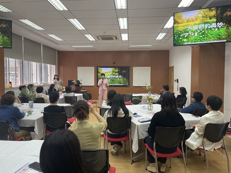 4月23日,sjb世俱杯中国官网入口工会在长宁校区南楼举办“工会在你身边”系列活动之——“芳香疗愈,心归自然”主题活动,近50名教职员工前来学习芳香调理知识并参与体验。
