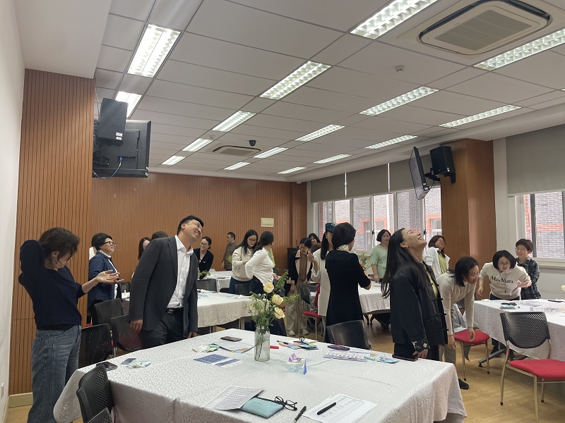 宋老师和三位助教用生动有趣的方式,引导老师们依次体验不同精油对身体产生的妙处,感受不同精油的神奇功效,让香气渗透身心,带来深层的放松与疗愈。在香气环绕的空间中,学院老师们跟随导师进行充分的芳香手法与呼吸练习,释放压力,唤醒内在的平静与专注。现场气氛活泼,教职工反响热烈。