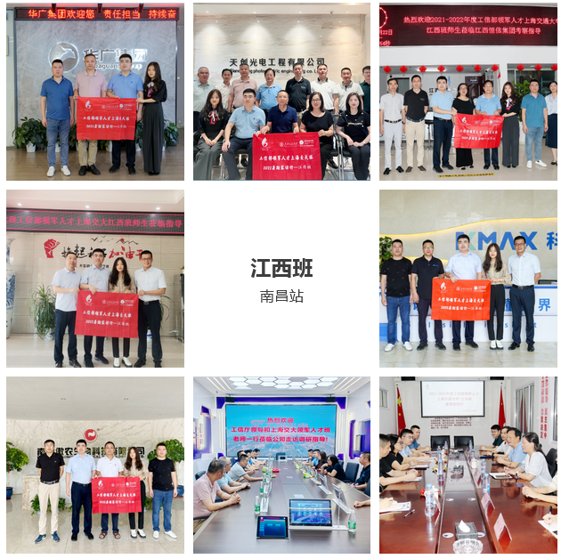 家访是一场温暖的约会,它传递着师生之间的爱与信任;家访是一场美丽的教育行走,我们携爱前行,凝聚校企合力。2022年8月,在江西省中小企业发展促进中心的支持下,在学院的指导下,领军人才与发展创新中心启动“工信部领军人才上海交大班2022暑期家访行”系列活动——江西站,走进南昌和九江两个地市的15家学员企业。在走访中推动领军企业间的联合与发展,促进领军企业家的成长与进步。