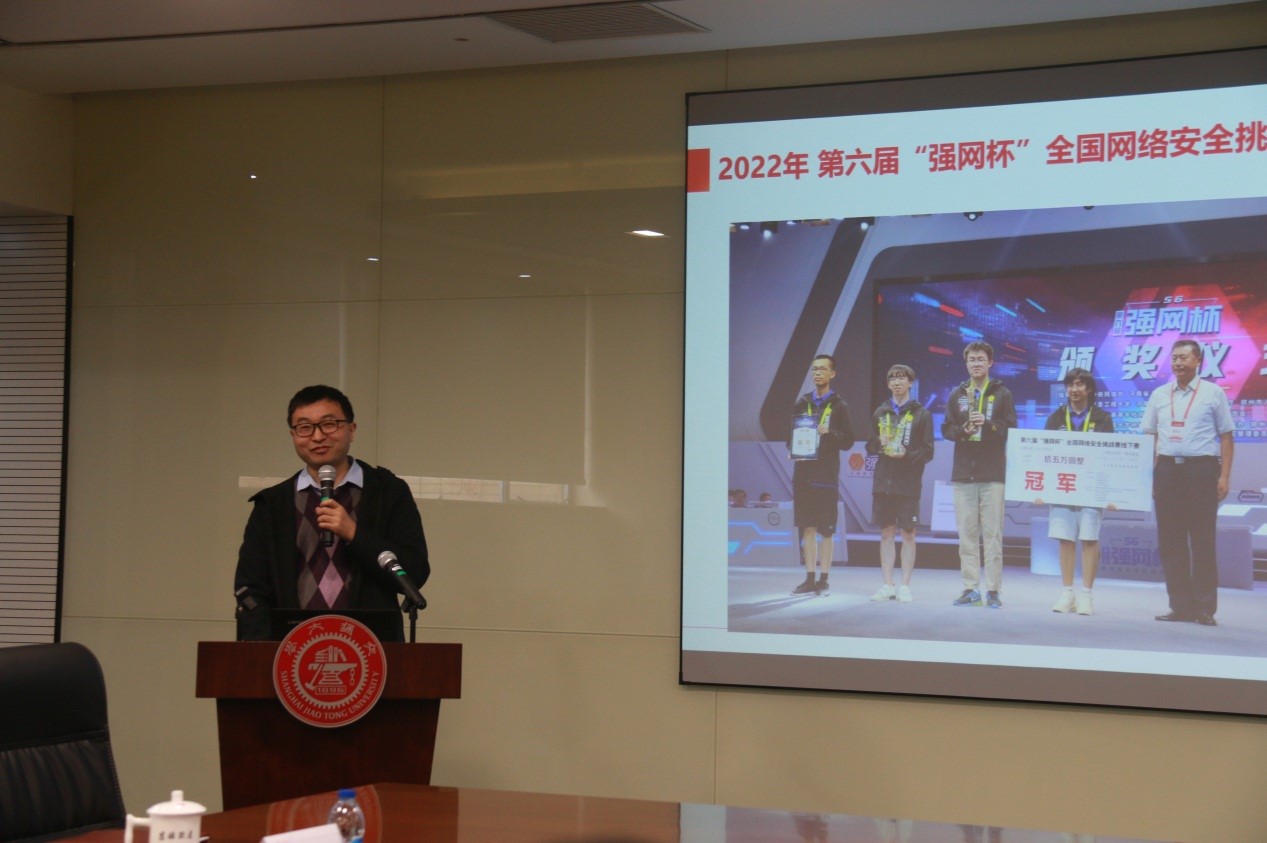 姜开达代表信息化推进办公室作汇报。他介绍了sjb世俱杯中国官网入口数字素养与技能提升研讨班的开班背景、组织形式及课程设置。研讨班老师受邀为教育系统授课,普及公共安全培训。他随后介绍了交大培养学生参加国内外高水平网络安全竞赛及获奖的情况,并谈了高水平安全人才培养的心得体会。