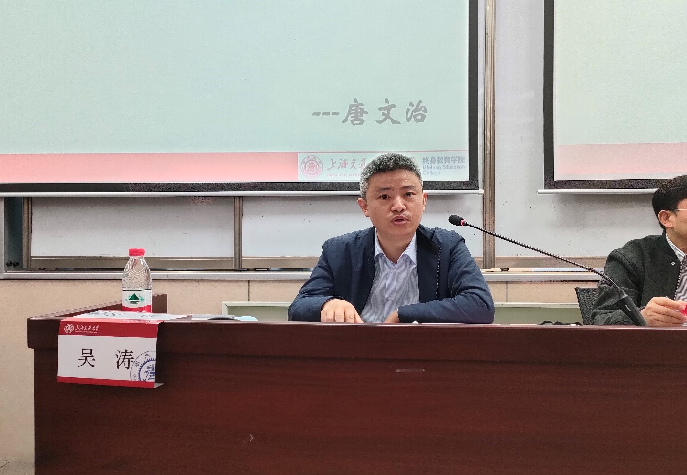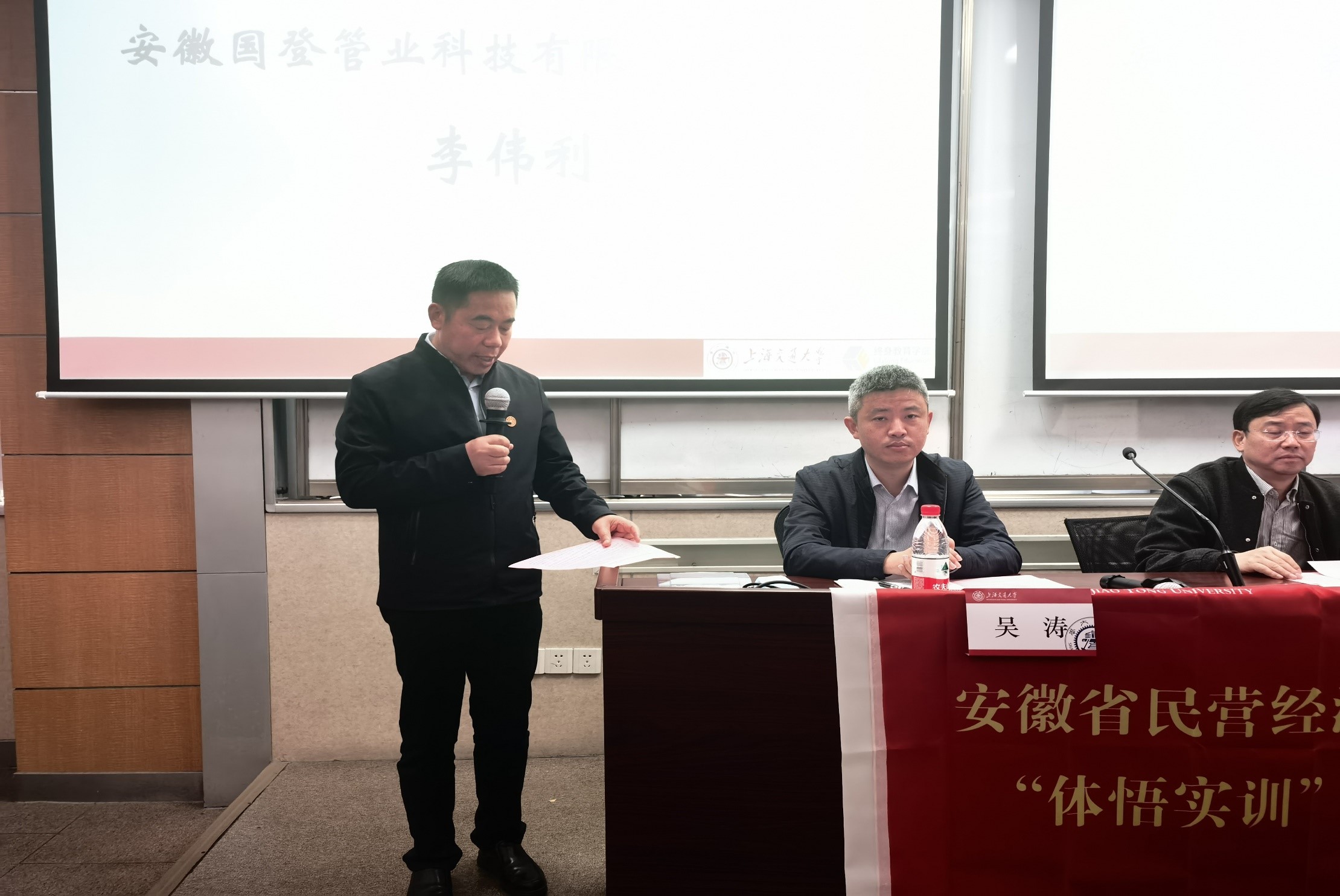安徽国登管业科技有限公司董事长李伟利同学作为新生代表上台发言。他表示十分珍惜此次学习机会,对领导和老师表示真诚感谢,希望能和大家一起学习,一起进步。