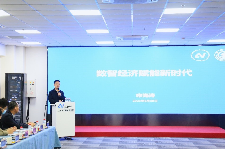 参访完成后,宋海涛院长给大家带来了《数智经济赋能新时代》的院长金课。宋院长在金课中结合伦敦的人工智能产业发展经验,深刻剖析了上海人工智能技术发展过程中所具备的优势及可能面对的困难,并结合所述背景环境介绍了上海市、交大及研究院在人工智能方面的战略布局,最后介绍了研究院目前已取得的可喜成就与未来的发展规划。