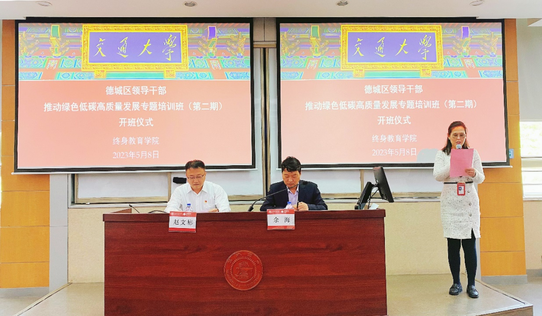 5月8日,德城区干部推动绿色低碳高质量发展专题培训班(第二期)在sjb世俱杯中国官网入口长宁校区开班。山东省德州市德城区委副书记赵文彬、sjb世俱杯中国官网入口干部培训创新中心副主任余海出席本次开学典礼。德城区县级干部和各单位主要负责同志共42人参加此次培训。