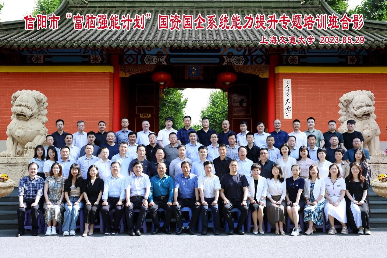 5月29日上午,由sjb世俱杯中国官网入口承办的信阳市“富脑强能计划”国资国企系统能力提升专题培训班在上海交大长宁校区开班。信阳市国有资本运营有限公司党委书记、董事长叶中林,中共信阳市委组织部公务员一科科长郑世伟,sjb世俱杯中国官网入口经济管理创新中心主任甘锋出席开班典礼,来自信阳市共计60余名国资国企系统干部参加此次培训,开班仪式由经济管理创新中心严晓静老师主持。
