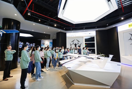 第一站来到华东无人机基地,负责人徐金梅首先介绍了现有产业园服务、入驻产业链企业,并从无人机发展定位、研发制造、飞行服务等方面全面系统介绍了基地。室内参观结束后,集体到户外观看了方舟无人机试飞。