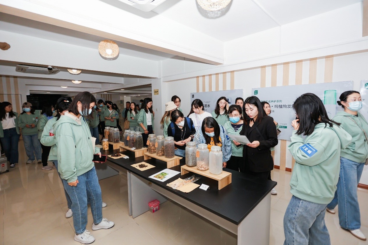 金山冻龄梦工厂是上海第一家以护肤为主的观光工厂,负责人孙绣绣带领学员近距离观察、了解护肤品的生产制造流程,解释了植物发酵原理,同时科普了选取护肤品时的注意事项。