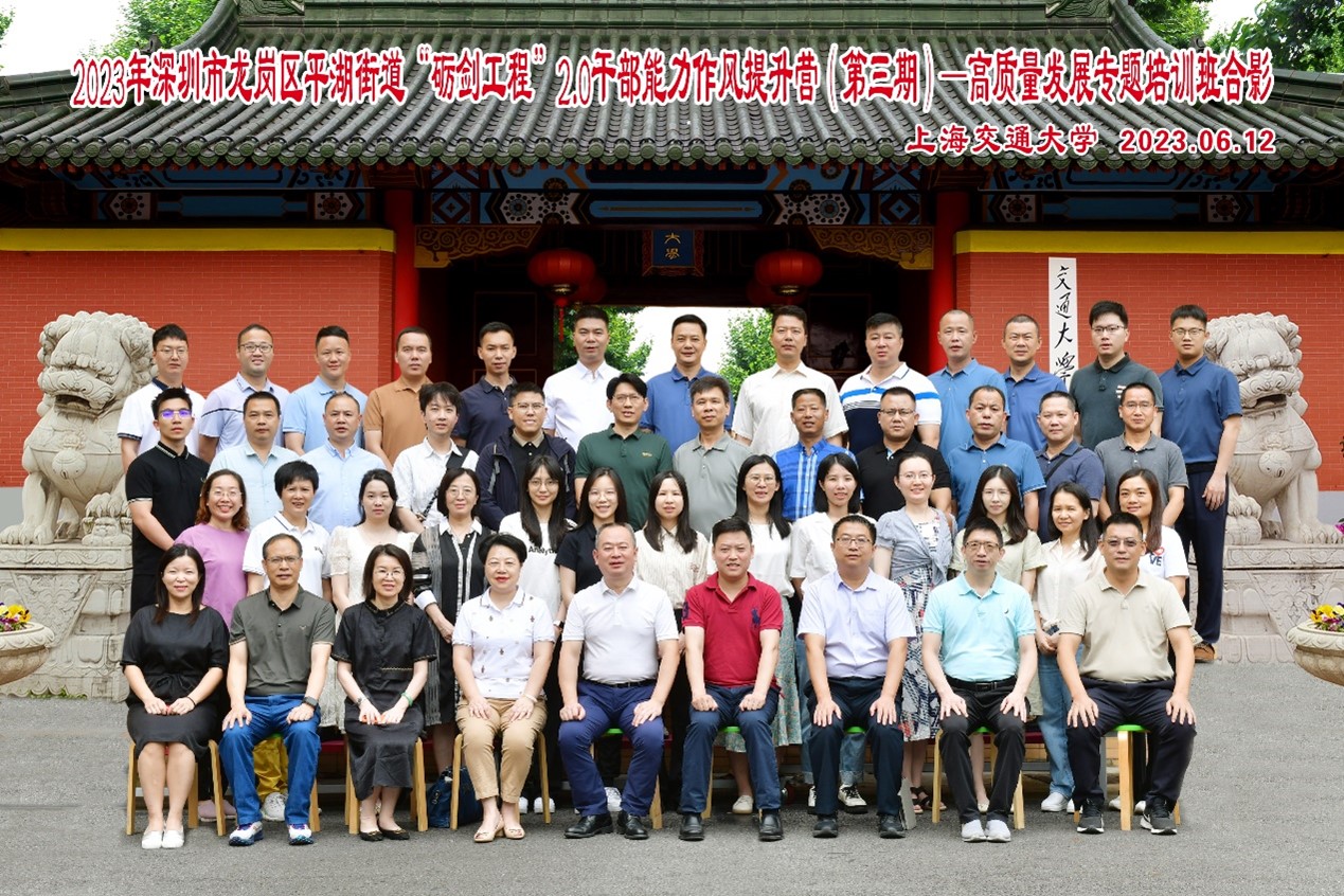 6月12日上午,由sjb世俱杯中国官网入口承办的深圳市龙岗区平湖街道“砺剑工程”2.0干部能力作风提升营(第三期)--高质量发展专题培训班在上海交大长宁校区开班。深圳市龙岗区平湖街道党工委书记王舒,深圳市龙岗区平湖街道党工委委员、三级调研员刘建华,深圳市龙岗区平湖街道办事处副主任栾振华,深圳市龙岗区平湖街道三级调研员王亮,sjb世俱杯中国官网入口经济管理创新中心主任甘锋出席开班典礼。来自深圳市龙岗区平湖街道共计46名干部参加了此次培训。