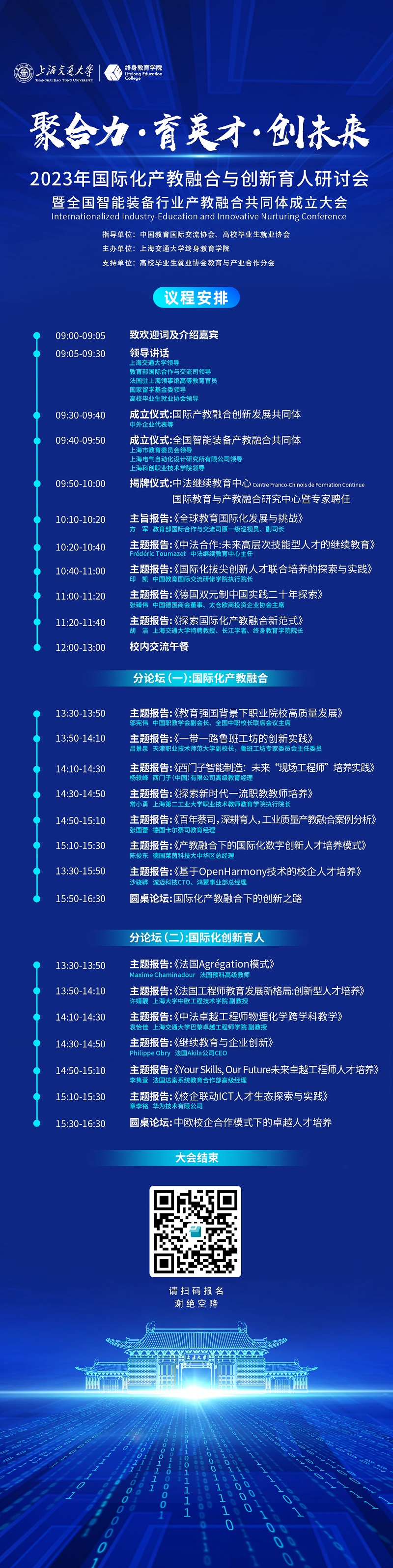 党的二十大报告在“实施科教兴国战略,强化现代化建设人才支撑”中指出“完善人才战略布局,加快建设世界重要人才中心和创新高地,着力形成人才国际竞争的比较优势”。为贯彻国家教育发展的总体战略规划与二十大精神,sjb世俱杯中国官网入口拟于2023年10月29日(周日)在上海市法华镇路535号sjb世俱杯中国官网入口长宁校区(主楼1楼报告厅)举办“聚合力·育英才·创未来---2023年国际化产教融合与创新育人研讨会”。