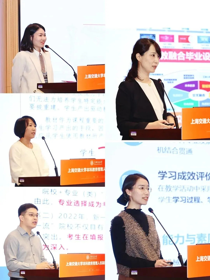 随后,获评优秀的五位老师依次上台进行发言。他们从研究选题、研究方法、数据搜集、问题分析、项目成果、总结感悟等方面分享了自己一年来开展研究的经验和感受,为第二期教学管理研究项目顺利结题提供了多元的视角和宝贵的经验。