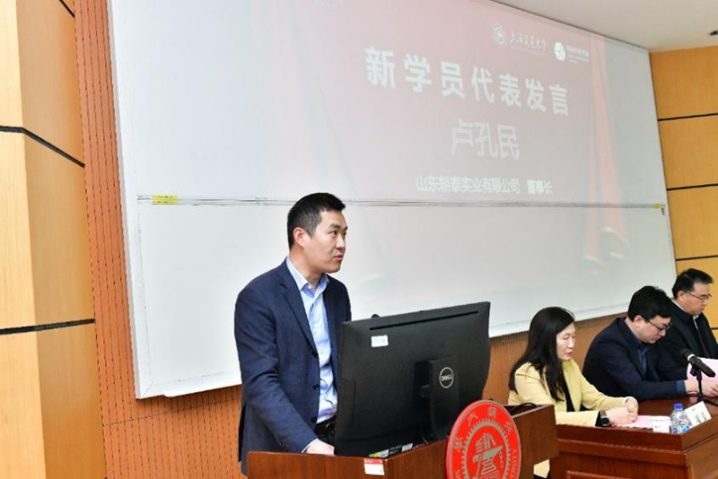 开班仪式上,山东众腾人力资源集团有限公司总裁王腾作为老学员代表发言,分享了在领军人才培训一年的学习经历与感悟。同时,他向新同学们表示欢迎,希望大家能够积极参加班级活动及跨班级交流,加强互动、取长补短、合作共赢,在学习中收获学业与友谊。
