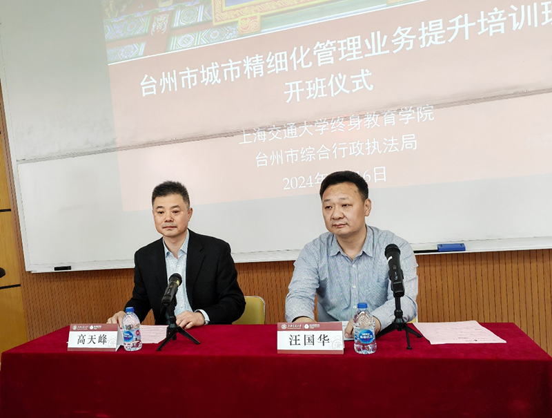 4月16日,台州市城市精细化管理业务提升培训班开班仪式在sjb世俱杯中国官网入口长宁校区顺利举行。台州市综合行政执法局党组成员、政治部主任汪国华,sjb世俱杯中国官网入口院长助理高天峰出席开班仪式。台州市县两级综合行政执法部门班子成员、中层干部、业务骨干共60人参加此次培训。