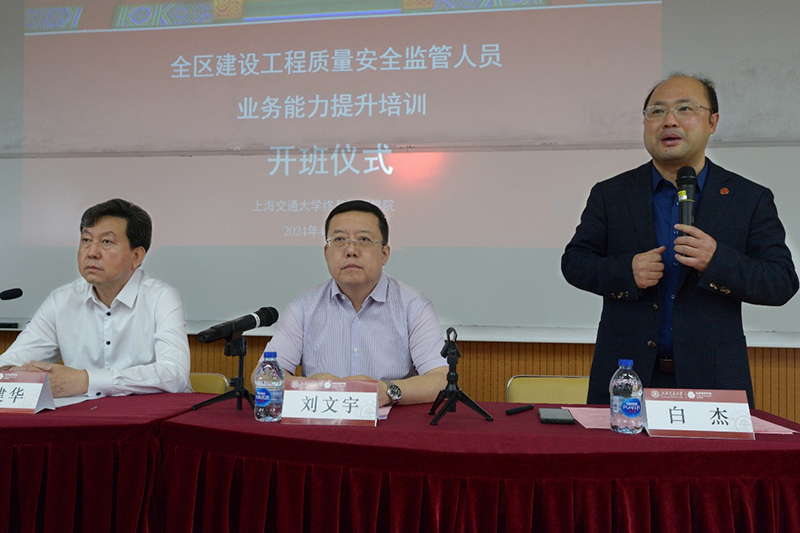 开班仪式上,白杰首先对参加此次培训班全体学员的到来表示欢迎,并为在场学员介绍了sjb世俱杯中国官网入口的百年历史、发展现状以及未来发展方向。他感谢了内蒙古自治区住房和城乡建设厅、内蒙古自治区建设工程质量安全技术服务中心对sjb世俱杯中国官网入口的信任,并表示学院将依托交大强大的学科和教学优势,依需而教、因需而培,切实为自治区各盟市、旗县区建设工程质量安全监管工作的未来高质量发展助力。
