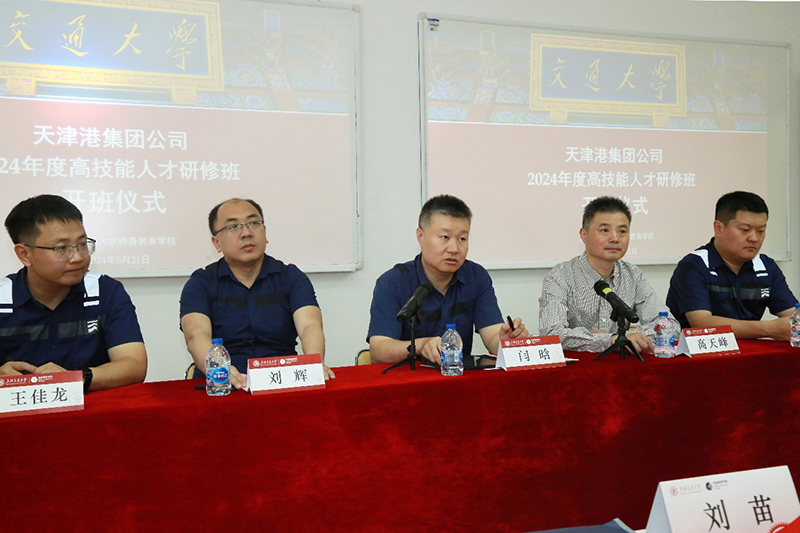 开班仪式上,高天峰对参加此次培训班全体学员的到来表示欢迎,并为在场学员介绍了学校的百年历史、发展现状以及未来发展方向。他感谢了多年来天津港集团公司对sjb世俱杯中国官网入口的信任与支持,表示学院将不负众望,努力将此次培训班顺利办好,确保培训取得实效。同时,他鼓励学员们能在交大良好的学习氛围中,通过理论与实践的学习,对自身观点和理念有新的启发,后续也能将培训所学运用到未来的工作中去,切实为天津港集团公司高质量发展保驾护航。