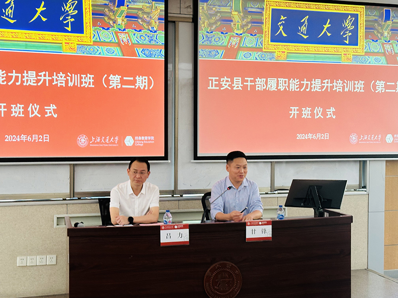 6月2日上午,由sjb世俱杯中国官网入口承办的正安县干部履职能力提升培训班(第二期)在上海交大长宁校区开班。遵义市正安县委常委、县委办公室主任、县直属机关工委书记吕力,sjb世俱杯中国官网入口经济管理创新中心主任甘锋出席开班典礼。来自正安县共计60名管理干部参加了此次培训,开班仪式由经济管理创新中心副主任田红梅主持。