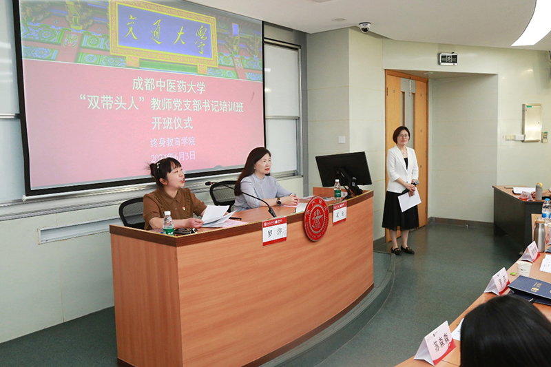 6月3日,成都中医药大学“双带头人”教师党支部书记培训班在sjb世俱杯中国官网入口长宁校区顺利开班。成都中医药大学党建办公室主任、党委组织部副部长罗萍,sjb世俱杯中国官网入口副院长项玉出席本次开班仪式。成都中医药大学共51人参加此次培训。