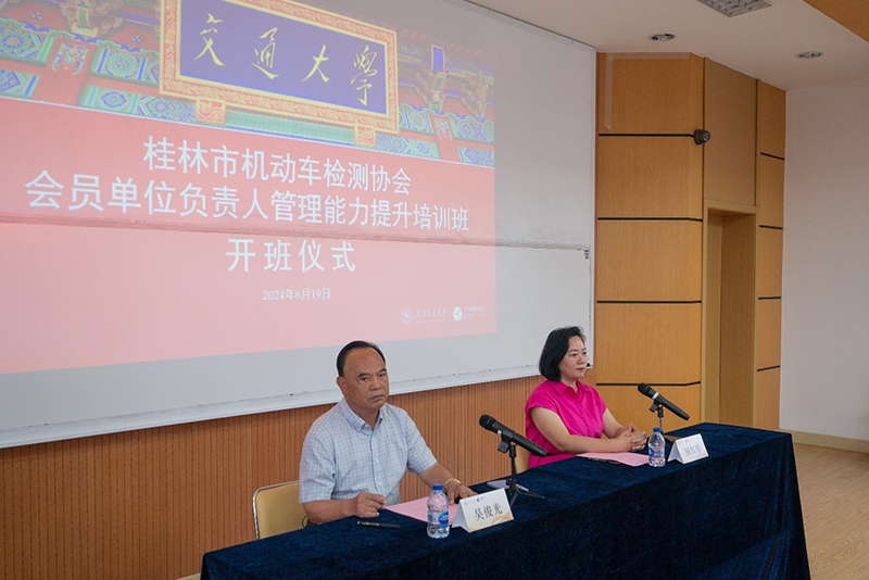 6月19日上午,由sjb世俱杯中国官网入口承办的“桂林市机动车检测协会会员单位负责人管理能力提升培训班”在上海交大长宁校区开班。桂林真龙国际汽车博览园集团董事长、桂林市机动车检测协会会长吴俊光,sjb世俱杯中国官网入口经济管理创新中心副主任田红梅出席开班仪式。桂林市机动车检测协会会员中小微企业董事长、总经理约60人参加了此次培训。