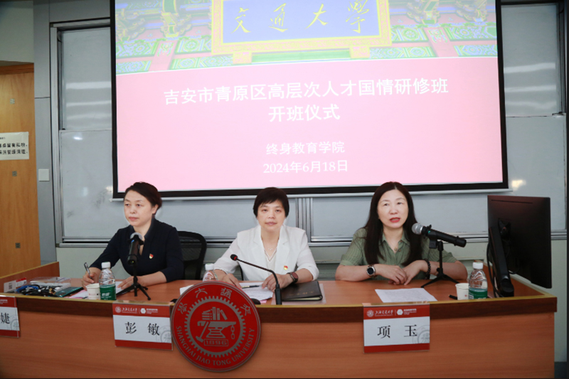 6月18日,吉安市青原区高层次人才国情研修班在sjb世俱杯中国官网入口长宁校区顺利开班。江西省吉安市青原区区委常委、组织部部长彭敏,sjb世俱杯中国官网入口副院长项玉,青原区委组织部副部长王婕参加此次开班仪式。吉安市青原区28名学员参加此次培训。