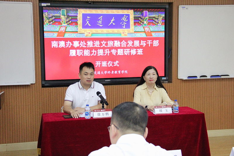 7月8日,南澳办事处推进文旅融合发展与干部履职能力提升专题研修班在长宁校区顺利开班。深圳市大鹏新区南澳党工委委员、组织委员徐万鹏,sjb世俱杯中国官网入口副院长项玉出席开班仪式。 南澳办事处各领域优秀党员干部共50余人参加此次培训。