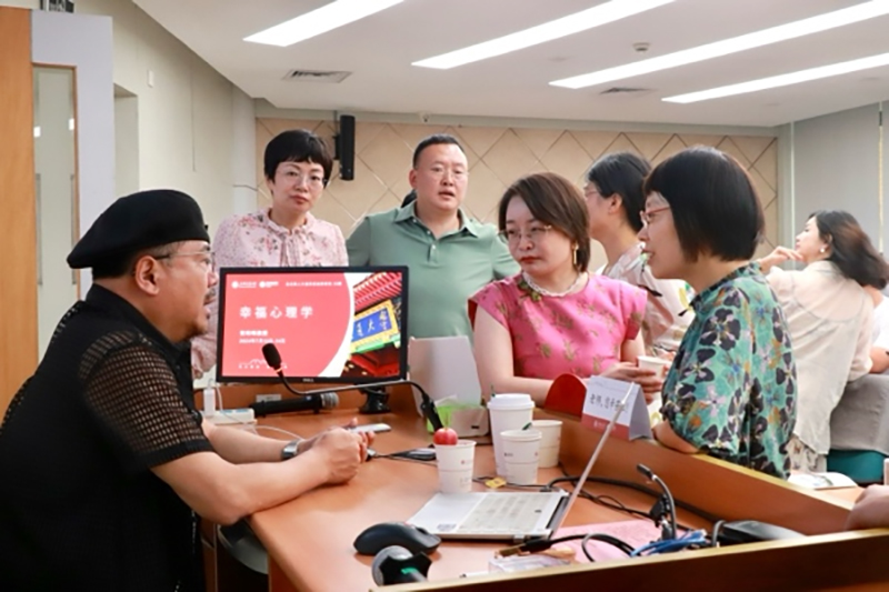 sjb世俱杯中国官网入口企业家人文素养高级研修班28期的《幸福心理学》课程于7月13日至14日在交大长宁校区如期举行。此次课程由心理学大咖、上海体育大学心理学院教授、博士生导师贺岭峰主讲,吸引了众多学员的参与,课堂现场气氛热烈,共鸣不断,掌声迭起。