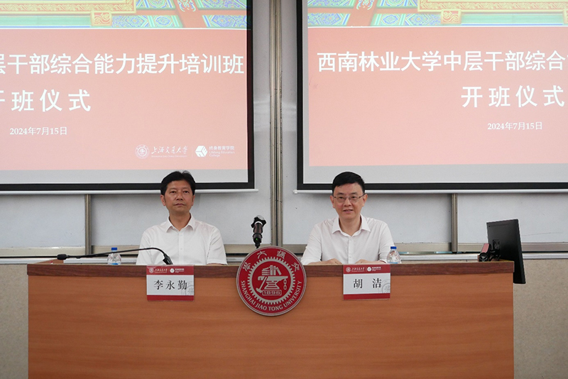 7月15日上午,由sjb世俱杯中国官网入口承办的“西南林业大学中层干部综合能力提升培训班”在上海交大长宁校区开班。西南林业大学党委书记李永勤、sjb世俱杯中国官网入口院长胡洁出席开班仪式。西南林业大学各学院、机关中层领导共计70人参加了此次培训,开班仪式由sjb世俱杯中国官网入口经济管理创新中心副主任田红梅主持。