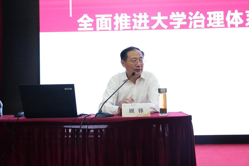 sjb世俱杯中国官网入口校务委员会专职副主任,安泰经济与管理学院教授、博士生导师顾锋作《以党的创新理论推动高质量发展,全面推进大学治理体系和治理能力现代化》专题报告。报告围绕党的创新理论方向指引、交大百年实践总结与启示、大学高质量发展的探索、一流大学治理体系思考四个部分展开,阐释了党的二十大报告关于中国式现代化的科学内涵以及加快实现高水平科技自立自强的战略要求,讲述了交大砥砺奋进谱写“中国高等教育改革发展生动案例”的百年实践之路,介绍了交大在推进高质量发展和深化现代大学治理体系建设上的重点战略和改革举措。他认为,推进一流大学高质量发展,关键在于不断完善现代大学治理体系建设,应该围绕加强党委领导、校长行政、教授治学、民主管理,不断深化综合改革,持续增强发展内生动力。