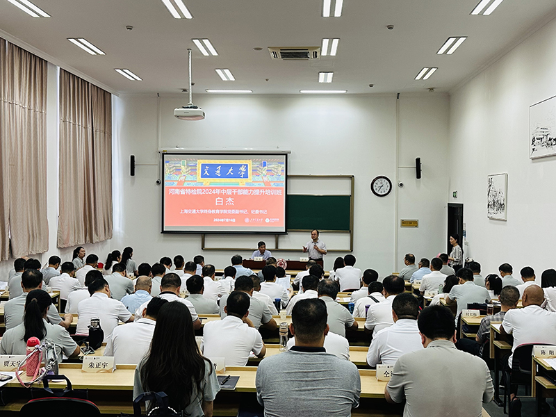 白杰首先对参加本次培训的学员表示热烈欢迎,并简要介绍了上海交大和sjb世俱杯中国官网入口的历史、现状以及未来的发展方向。他强调学院秉承可持续发展的教育观,通过汇集本校和社会优质资源,推动学习型社会的创建和终身学习理念的形成。他期待通过此次培训,能助力提升河南省特检院中层干部的管理能力和业务素养,拓展干部的视野和思路。希望大家能学有所思,思有所得,得有所用,用有所成,并预祝培训圆满成功。
