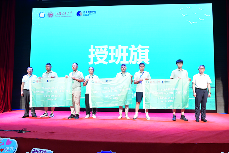 为做好“头雁”人才的培养工作,按照内蒙古自治区农牧厅统一要求,也为了更好进行班级管理和服务,本次培训依据交大校训,分设了上海交大南洋班、思源班、致远班共6期,选派和组成了专属项目团队。仪式中,与会领导们分别为三个班级6期学员代表佩戴校徽及头雁徽章,并授予班旗,“头雁”的责任感和使命感深深印刻在现场每一位学员的心中。此外,本次开班还为每位学员配置了一本《农村金融理论与实务》的书籍,希望学员们以“头雁”之才、之勇、之智,发挥“强雁”示范带动作用,引领乡村产业发展。