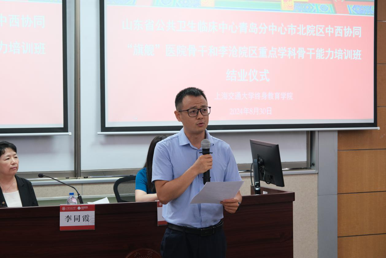 结业仪式上,李同霞首先代表青岛市公共卫生临床中心党委对各位学员圆满完成学习任务、顺利结业表示热烈的祝贺,并对sjb世俱杯中国官网入口各位领导和老师的精心安排表示衷心的感谢。她期待学员们在未来能将此次培训收获与工作相融合,推动青岛市公共卫生临床工作的进一步发展。