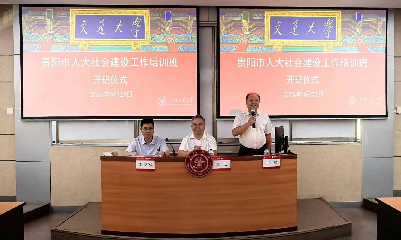 9月23日上午,由sjb世俱杯中国官网入口承办的贵阳市人大社会建设工作培训班在上海交大长宁校区开班。贵阳市人大常委会党组成员、副主任卓飞,sjb世俱杯中国官网入口党委副书记、纪委书记白杰出席开班仪式,贵阳市人大社会委主任委员人选刘安军主持开班式。贵阳市人大社会委组成人员、市人大社会建设领域专业代表小组代表和市人大常委会机关干部,市直对口联系部门及相关部门、贵安新区的分管负责人或业务骨干,各区(市、县)人大常委会分管负责人、人大社会委或有关专委会的负责人,部分乡镇人大主席或街道人大工委主任共58人参加本次培训班。