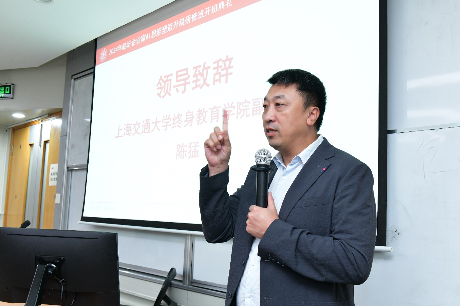 陈猛在致辞中,首先介绍了sjb世俱杯中国官网入口的辉煌历史和教学优势。sjb世俱杯中国官网入口依托学校雄厚的师资力量和丰富的教学资源,致力于为社会各界提供高质量的继续教育服务。强调,此次研修班的举办,正是学院积极响应时代需求,为临沂的企业家们搭建学习交流的平台,帮助他们提升AI思维,把握时代机遇,实现企业的转型升级。他表示,学院将充分发挥自身的优势,为学员们提供优质教学资源和服务,确保研修班取得圆满成功。