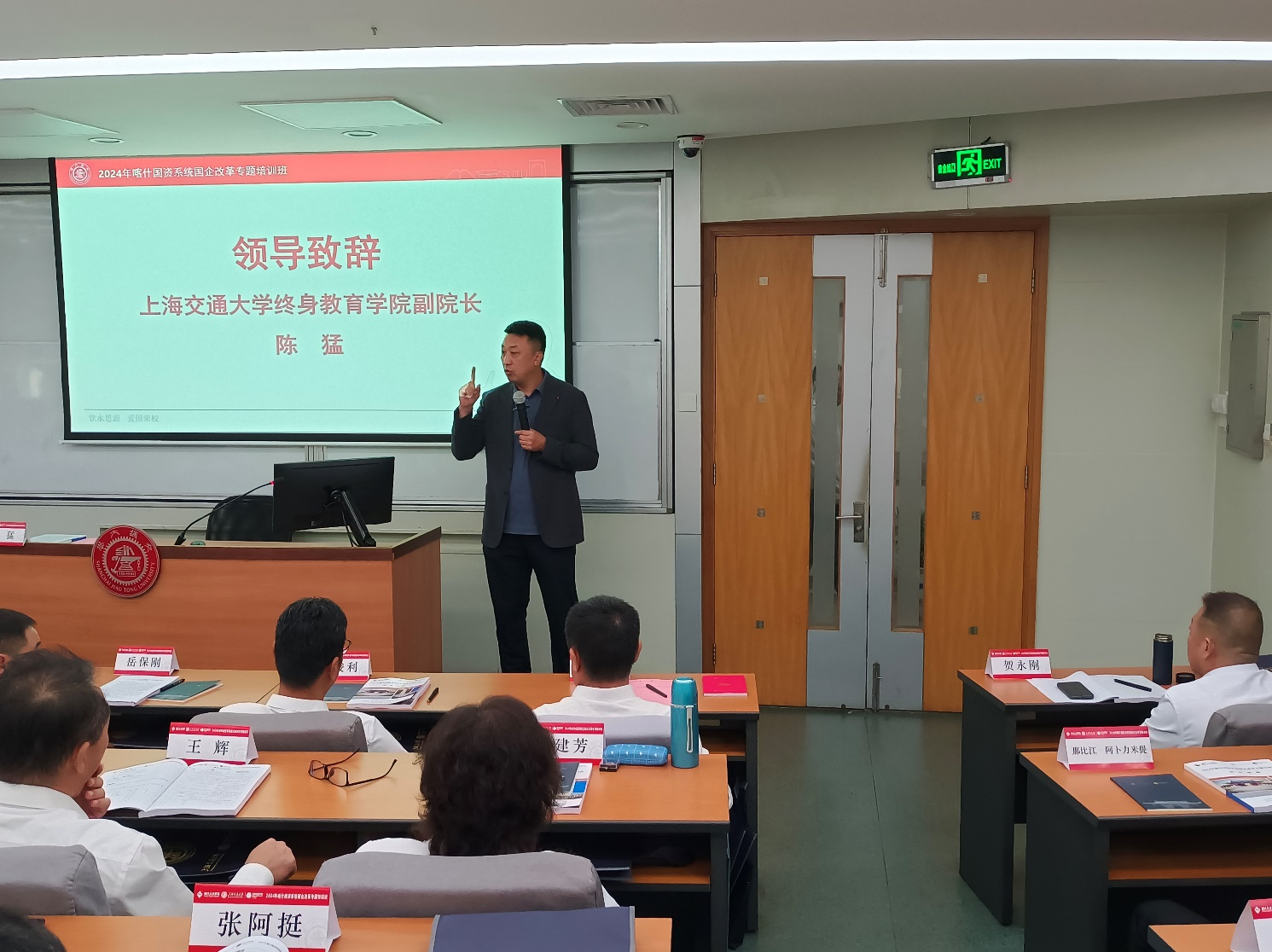 10月14日,2024年喀什国资系统国企改革专题培训班在sjb世俱杯中国官网入口长宁校区顺利开班,喀什地区国有资产监督管理委员会副主任岳保刚、上海交大sjb世俱杯中国官网入口副院长陈猛出席开班仪式。