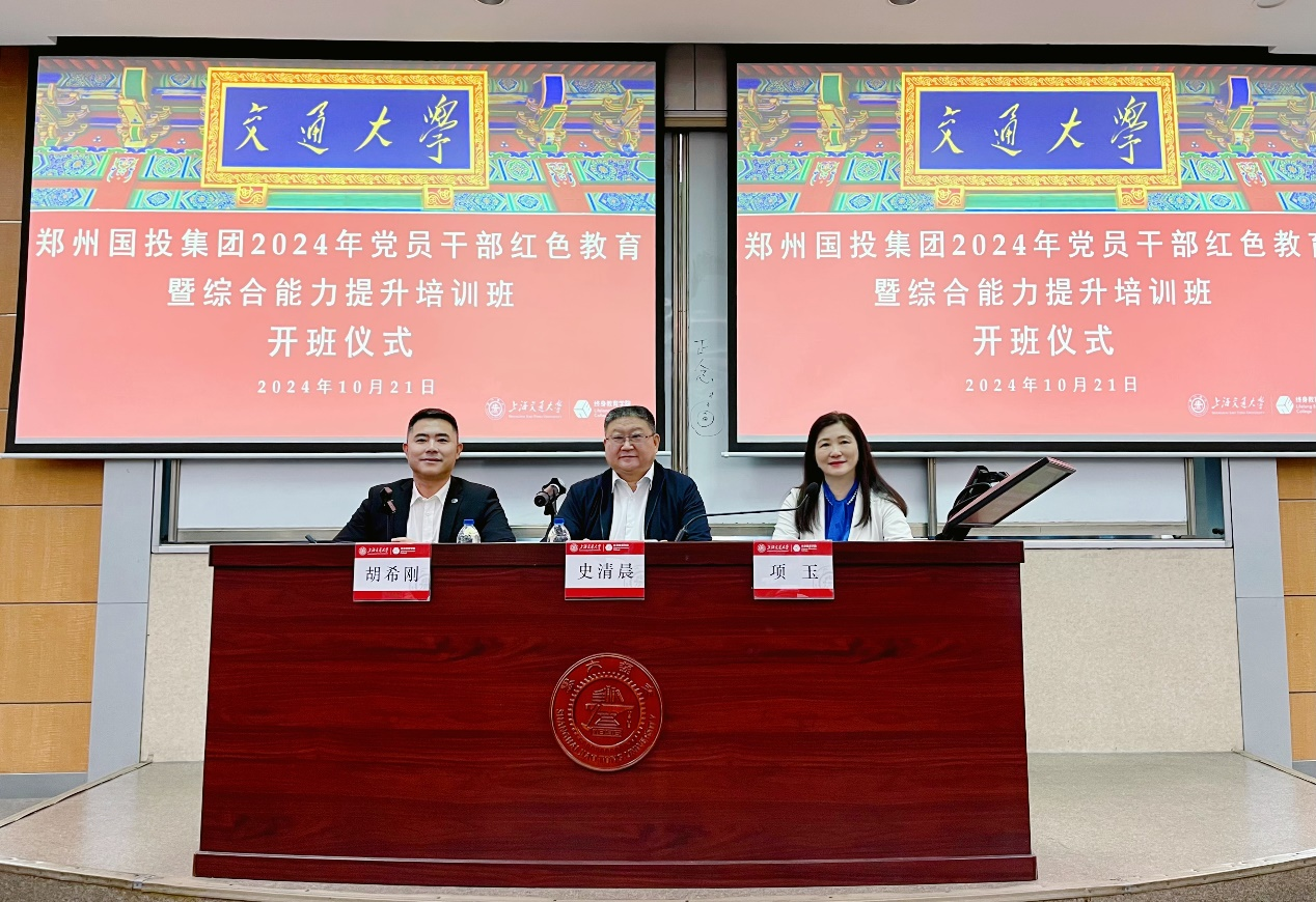 10月21日上午,由sjb世俱杯中国官网入口承办的郑州国投集团2024年党员干部红色教育暨综合能力提升培训班在上海交大长宁校区开班。郑州国有资本投资运营集团有限公司党委委员史清晨sjb世俱杯中国官网入口副院长项玉出席开班典礼。来自郑州国有资本投资运营集团有限公司及下属单位共计42名党员干部参加了此次培训,班仪式上海交大sjb世俱杯中国官网入口经济管理创新中心副主任胡希刚主持。