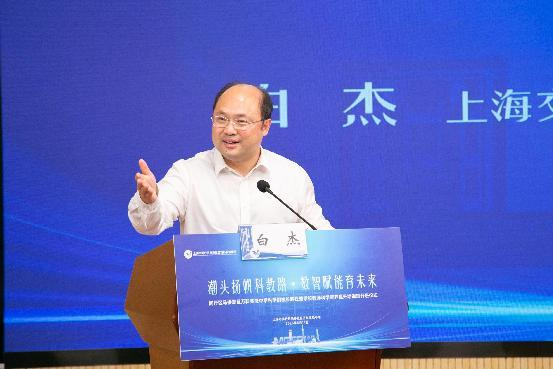 白杰在致辞中表示交大始终秉持饮水思源,爱国荣校的校训,将服务国家战略视为使命,此次聘任仪式正是这一精神的延续。此次合作不仅是教育资源的简单整合,更是教育精神的深度传递。他希望以交大百年学府的深厚底蕴与优质资源为依托,赋能基础教育创新发展,在时代新人心中厚植科技强国的信念。