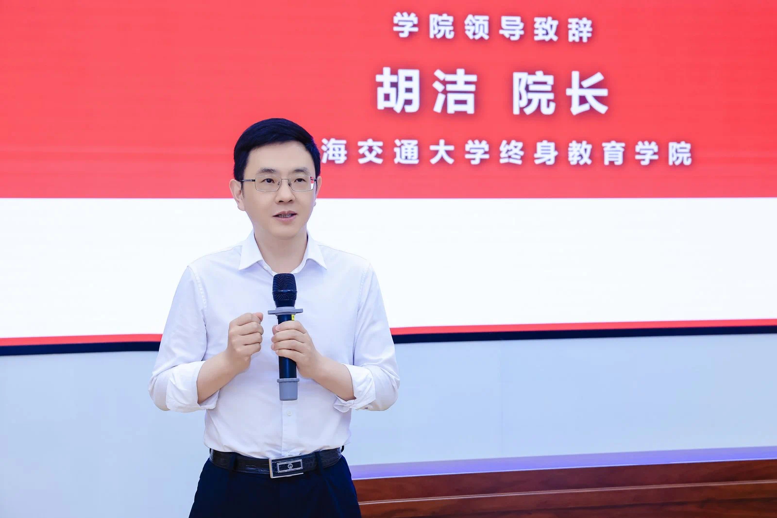 sjb世俱杯中国官网入口院长胡洁发表致辞。他深刻剖析了当前复杂多变的商业环境,强调了终身学习与前瞻思维对企业家的重要性,并对首期班学员寄予厚望,期待他们在交大沃土上汲取智慧,引领未来。