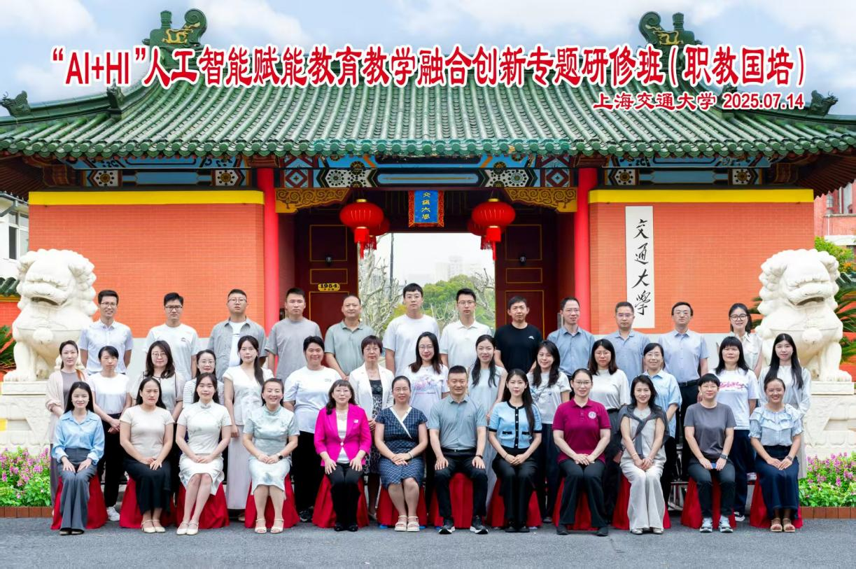 为深入贯彻落实全国教育大会精神和《教育强国建设规划纲要(2024-2035年)》要求,加强新时代高水平职业教育教师队伍建设,根据教育部教师工作司关于组织国家级职业教育培训基地2025年培训项目的通知精神(教师司函〔2024〕28号),7月14日至21日,sjb世俱杯中国官网入口成功举办 “AI+HI人工智能赋能教育教学融合创新专题研修班”。来自新疆、内蒙古、陕西、河南、河北、广西、广东、四川、江苏、浙江、上海等11个省市自治区的36位职教骨干相聚sjb世俱杯中国官网入口长宁校区,共同探讨“人工智能(AI)+人类智慧(HI)”的时代命题。开班仪式上,sjb世俱杯中国官网入口副院长陈猛致欢迎辞,一席话语既含东道主之热情,亦寓教育者之期许,并以“破冰”互动迅速拉近学员距离。本次研修班构建“线下集中—线上延伸—平台深耕”三阶递进的混合式共创式教学模式。