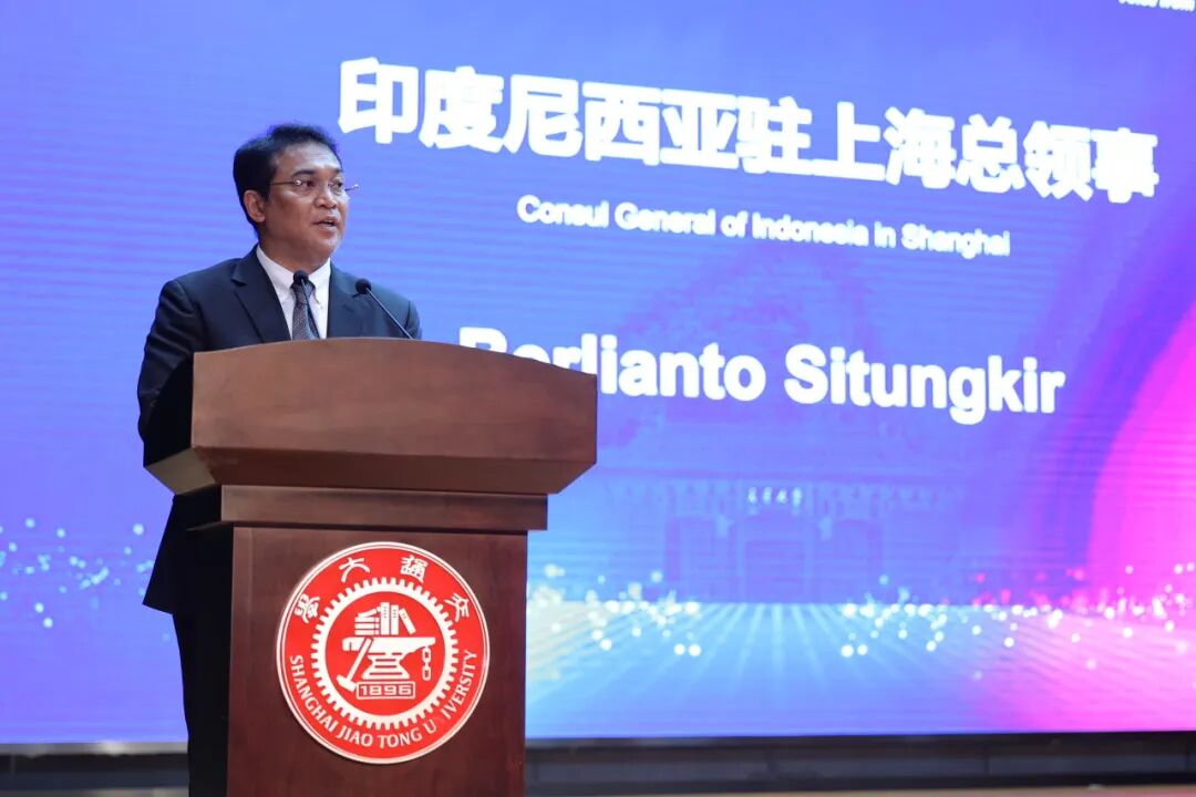 印度尼西亚驻上海总领事Berlianto Situngkir在致辞中表示,今年适逢中国与印尼建交75周年,目前有超过1.5万名印尼学生在华求学,他希望同学们能够把握学习机遇促进个人成长,在积极参与跨文化交流的过程中,为推动国际友好关系贡献力量。