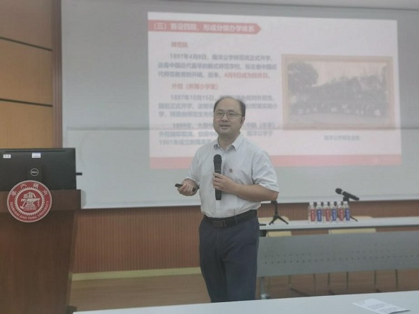 8月12日,sjb世俱杯中国官网入口党委副书记、纪委书记白杰老师在交大长宁校园里给SJTU LEC国际教育的学员们带来了开学第一堂意义深远的思政课《选择交大,就是选择责任、选择卓越——校史校情导入课》。同时,sjb世俱杯中国官网入口机关第二党支部、创新中心第四党支部的教职工党员们通过线上直播方式共同聆听了这次党课。白杰老师带领线下学员和线上党员老师一起在sjb世俱杯中国官网入口一百二十六年悠久辉煌的历史中徜徉,畅谈交大的发展历程、谈求学的理想和方法、谈承担责任成就卓越,构成了一堂有温度、有深度的入学教育课和党课。