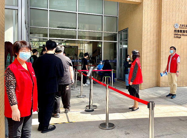 学院党员和广大教职工原原本本读党的二十大报告,认认真真参加学院系列党课学习,扎扎实实开展教育实践活动。主动当好党的二十大精神的领学者、宣讲者和践行者,在校园疫情防控第一线开展志愿服务活动,助力校区核酸采样,维持核酸检测秩序,督促落实疫情防控方案,共同筑牢校园安全屏障。