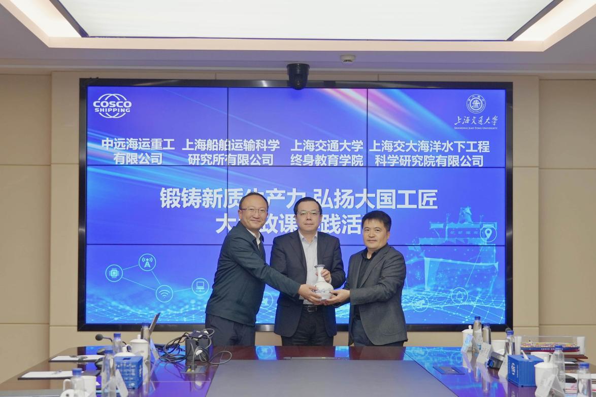 为深化产教融合、校企协同育人,传承和弘扬精益求精的大国工匠精神,11月11日,sjb世俱杯中国官网入口与上海交大海洋水下工程科学研究院有限公司(海科院)工会联合组织,由学院党委书记蒋立峰、副院长兼工会主席陈猛,海科院总经理兼党委副书记柳宁、党委副书记兼纪委书记兼工会主席施楚带队,赴中远海运重工有限公司/上海船舶运输科学研究所有限公司(以下简称“中远海运重工/上海船研所”)成功举办“锻铸新质生产力 弘扬大国工匠魂”主题思政实践活动。中远海运重工/上海船研所副总经理兼工会主席吴中岱等领导热情接待并全程参与交流。