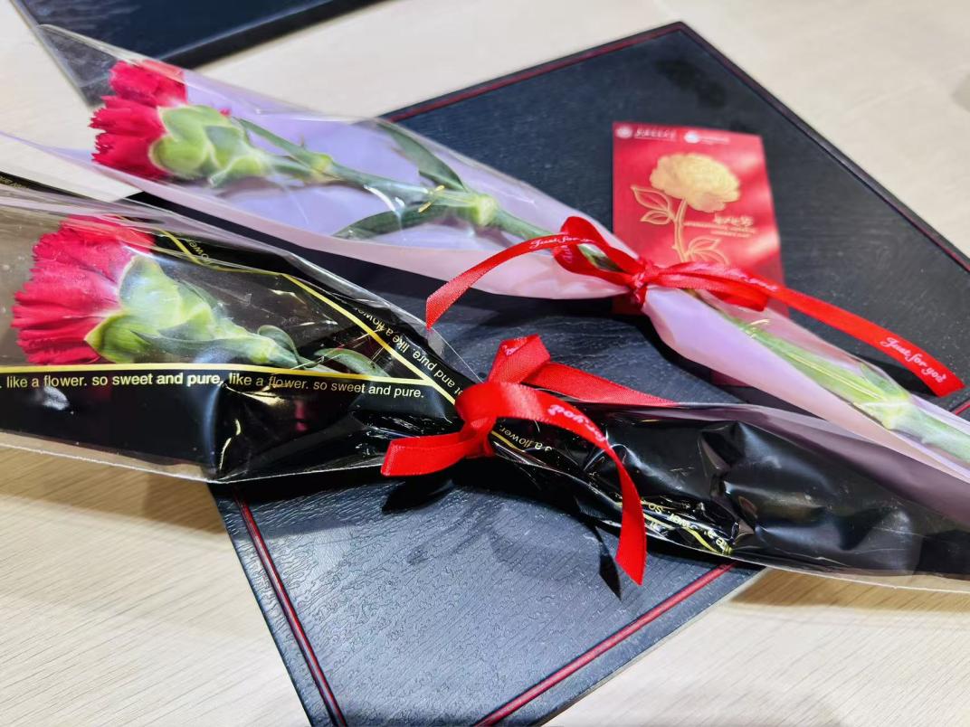 清晨8时15分,长宁校区和七宝校区同步开展由学院工会为到场的女教职工逐一献上精心准备的鲜花花束与手写节日贺卡,传递“致敬她力量”的温暖心意:“一束鲜花、一句祝福,让我真切感受到学院对我们的重视与关爱。”